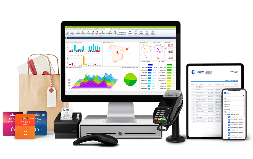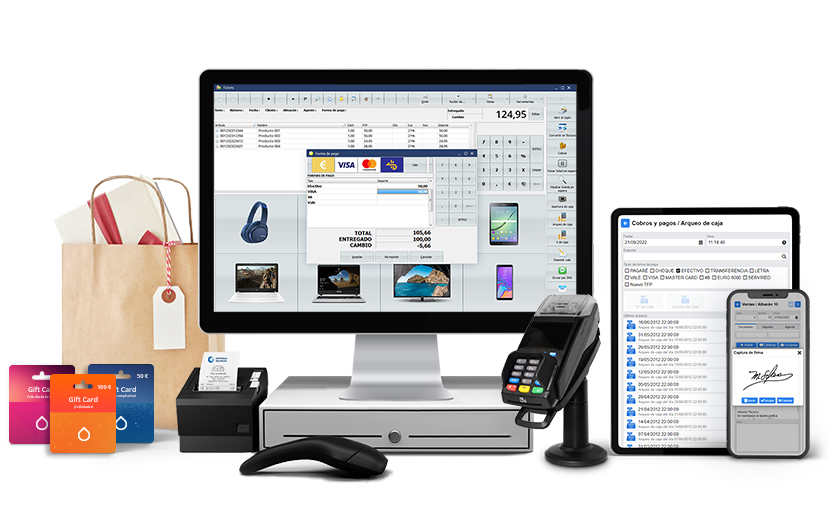 Nuestro software de TPV táctil le permite conctarse con cualquier tipo de periférico y obtener así mayor agilidaz y rapidez en sus procesos de gestión diarios.