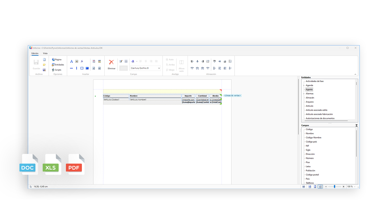 Cree ilimitados nuevos informes y listados, exportables a los estándares ofimáticos como PDF, HTML, TXT, DOC...