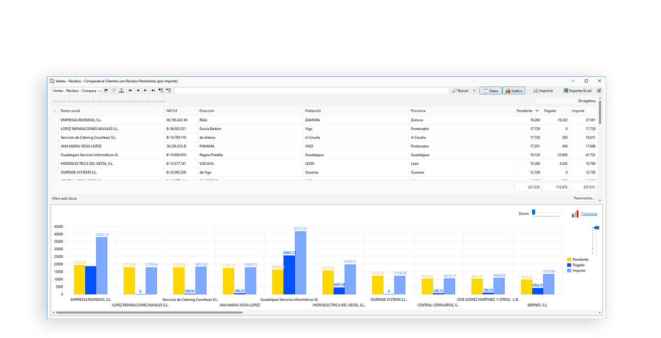Realiza un seguimiento exhaustivo de las devoluciones de recibos, indicando de forma manual, o importando el fichero de devoluciones facilitado por el banco.