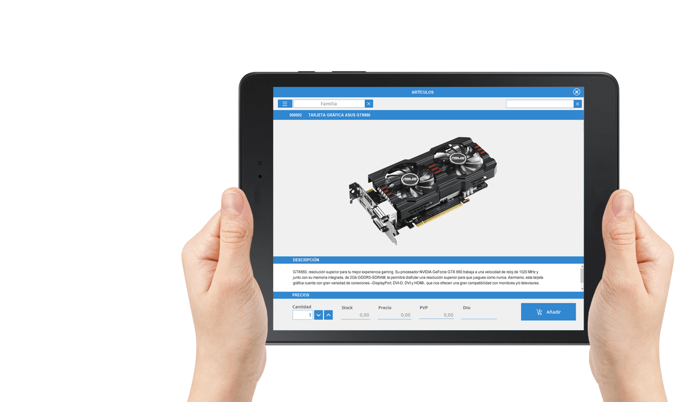 Podrá dotar a sus agentes con una herramienta que permita mostrar el catálogo de producto con fotos en gran tamaño, descripción ampliada del producto y precios.