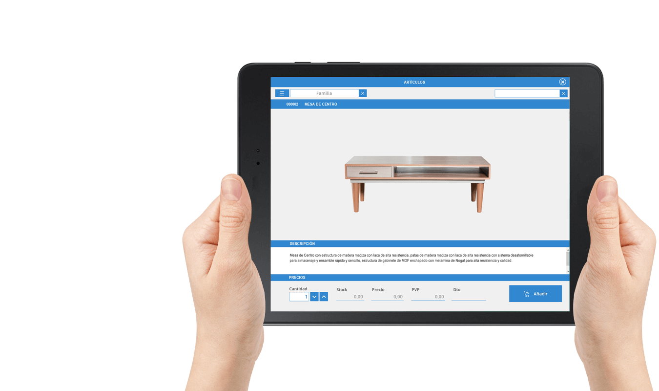 Podrá dotar a sus agentes con una herramienta que permita mostrar el catálogo de producto con fotos en gran tamaño, descripción ampliada del producto y precios.