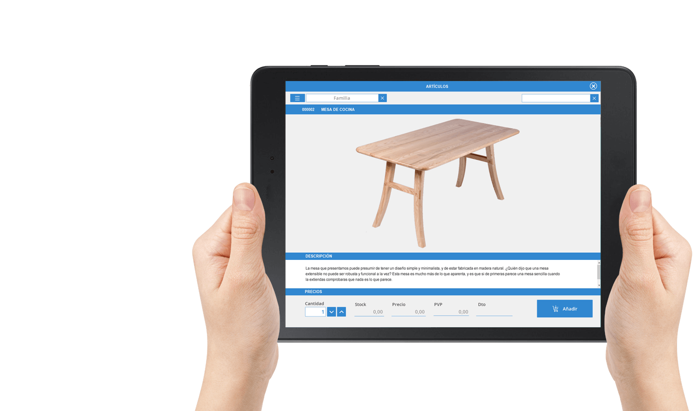 Podrá dotar a sus agentes con una herramienta que permita mostrar el catálogo de producto con fotos en gran tamaño, descripción ampliada del producto y precios.