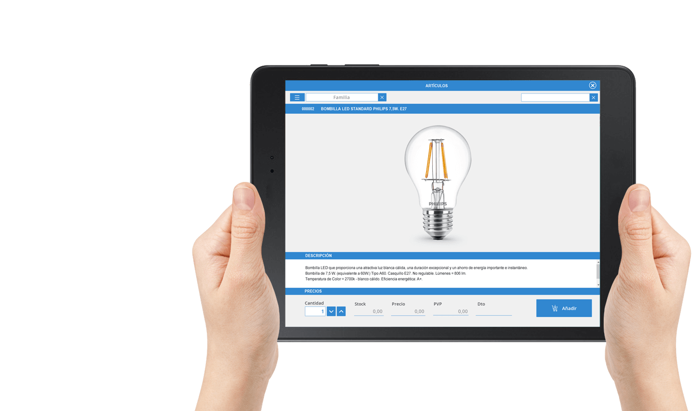 Podrá dotar a sus agentes con una herramienta que permita mostrar el catálogo de producto con fotos en gran tamaño, descripción ampliada del producto y precios.