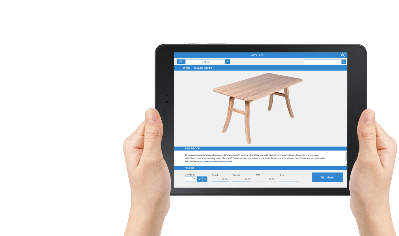 Podrá dotar a sus agentes con una herramienta que permita mostrar el catálogo de producto con fotos en gran tamaño, descripción ampliada del producto y precios.