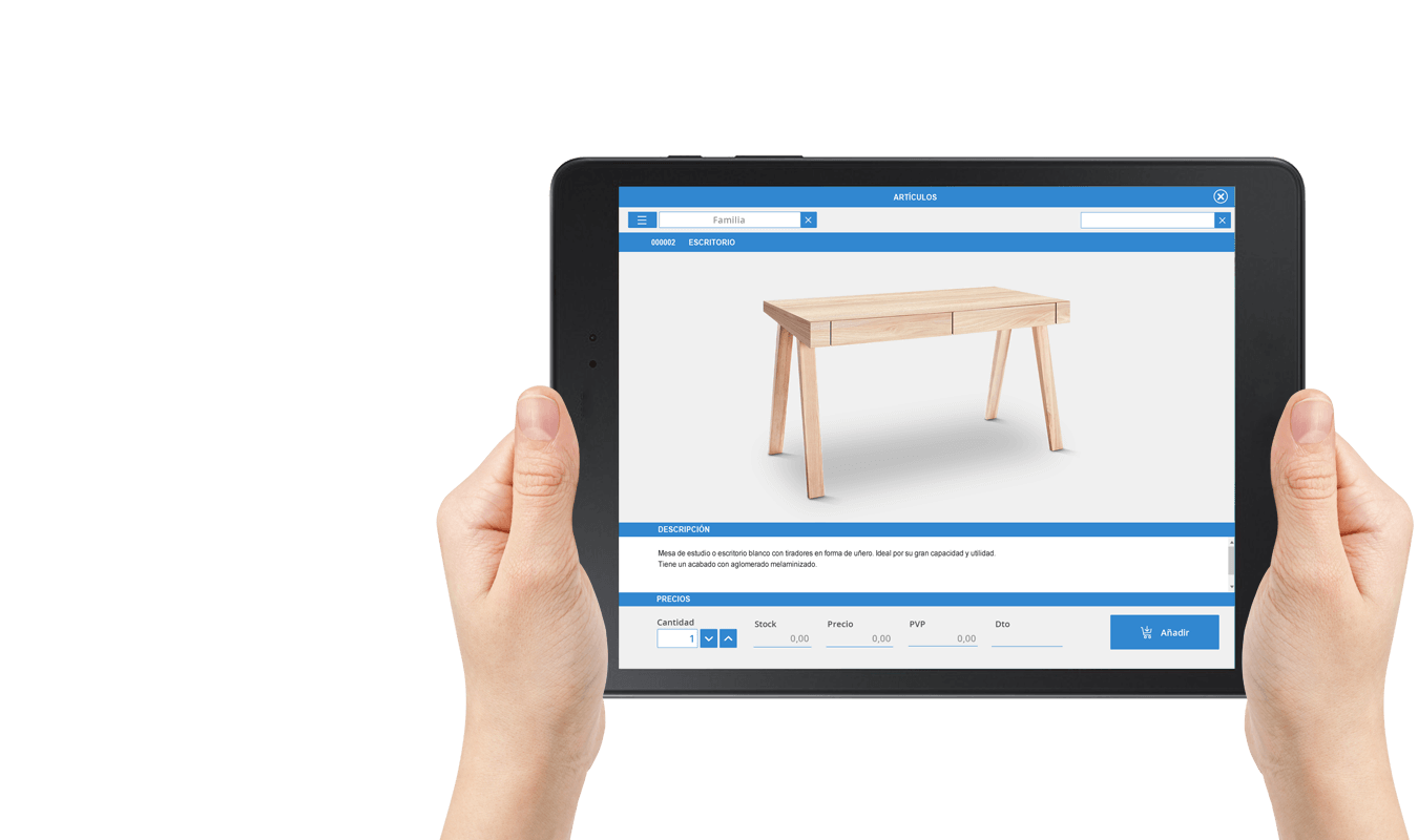 Conecte su software de TPV táctil con balanzas, lectores de códigos de barras, recogida de firma digital... facilitando el registro de información y haciendo más fácil el proceso de venta. Descubre todas las funcionalidades que te ofrece nuestro programa de gestión para tiendas de muebles de oficina.
