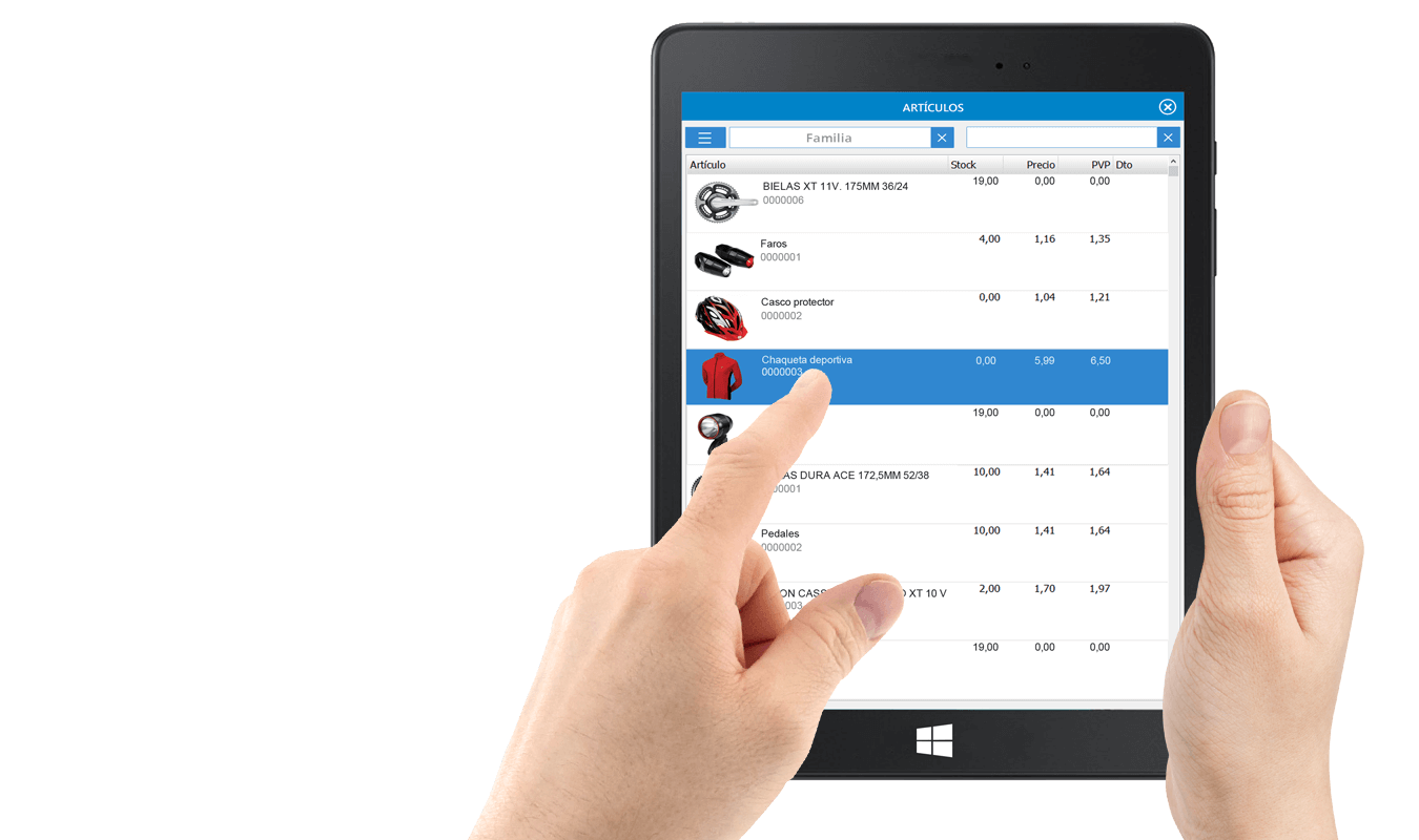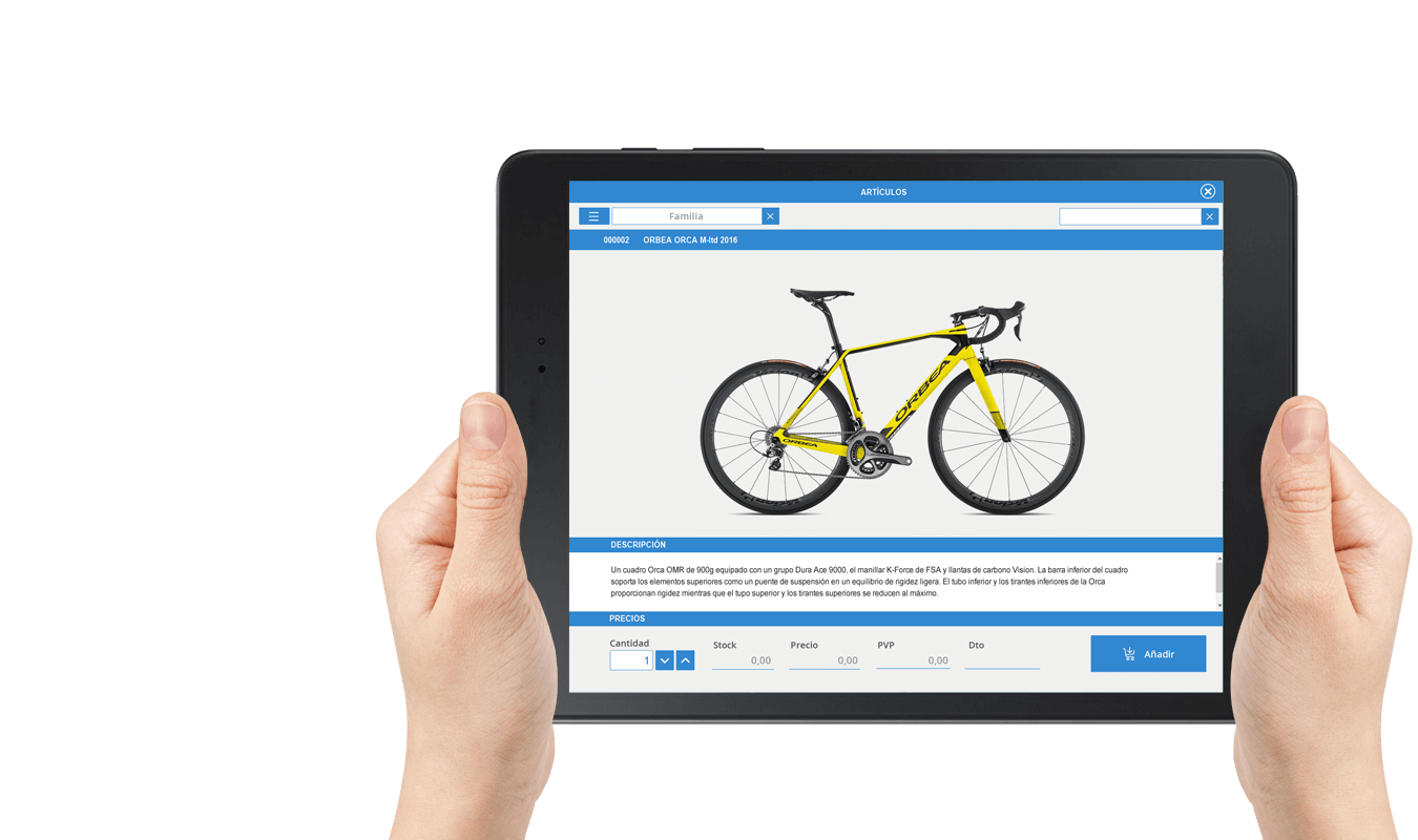 Conecte su software de TPV táctil con balanzas, lectores de códigos de barras, recogida de firma digital... facilitando el registro de información y haciendo más fácil el proceso de venta. Descubre todas las funcionalidades que te ofrece nuestro programa TPV para tiendas de bicicletas.