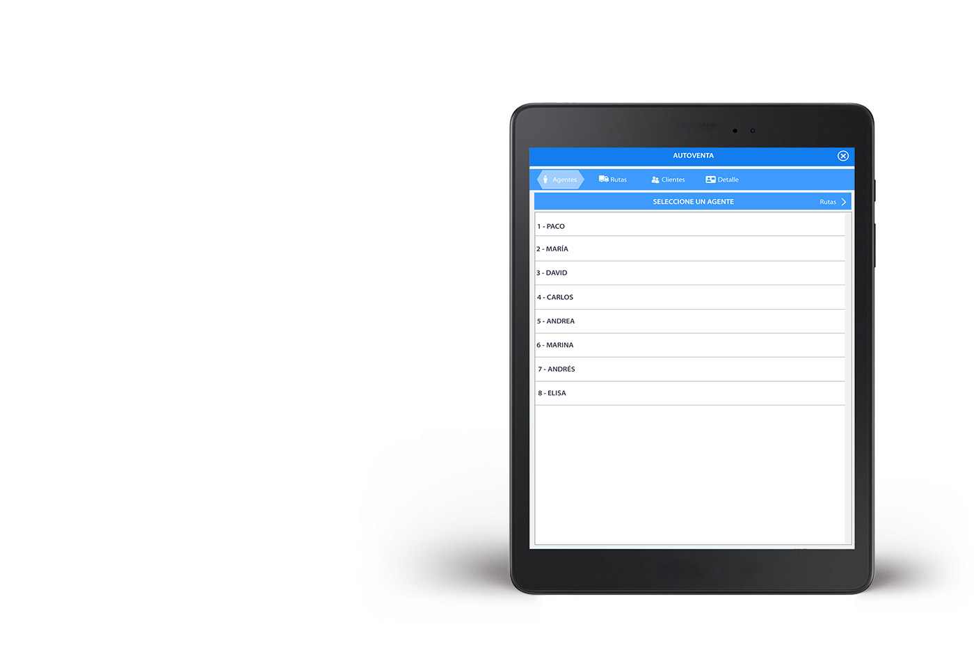 El programa de preventa para tablet te permite configurar para cada dispositivo los agentes, rutas y clientes que desee almacenar, consiguiendo así gestionar la cantidad de datos óptima para la transferencia de información con el ordenador central.