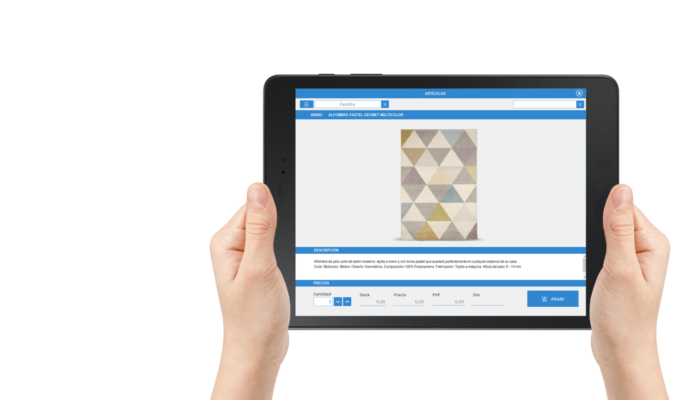 Conecta tu software de TPV táctil con balanzas, lectores de códigos de barras, recogida de firma digital... facilitando el registro de información y haciendo más fácil el proceso de venta. Descubre todas las funcionalidades que te ofrecen nuestros programas para tiendas de alfombras.