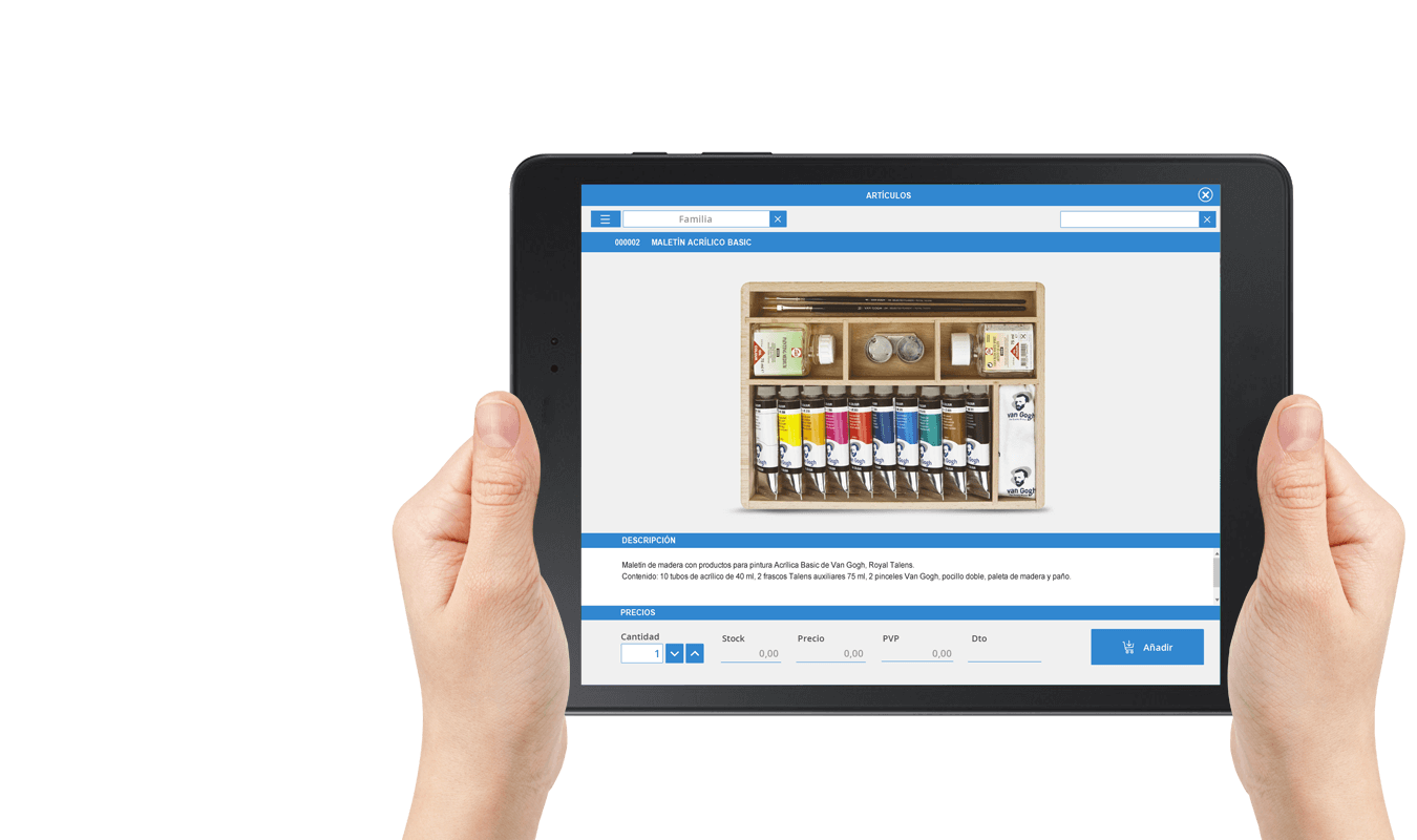 Conecta tu software de TPV táctil con balanzas, lectores de códigos de barras, recogida de firma digital... facilitando el registro de información y haciendo más fácil el proceso de venta. Descubre todas las funcionalidades que te ofrecen nuestros programas para tiendas de Bellas Artes.