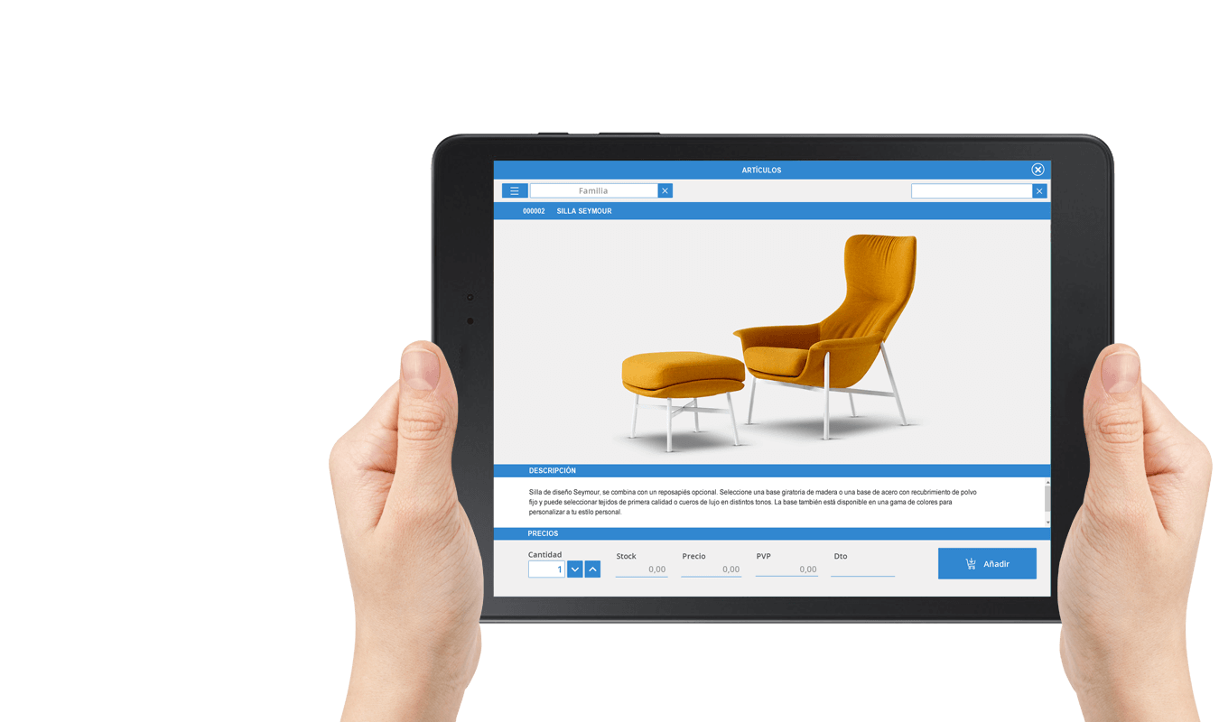 Podrá dotar a sus agentes con una herramienta que permita mostrar el catálogo de producto con fotos en gran tamaño, descripción ampliada del producto y precios.