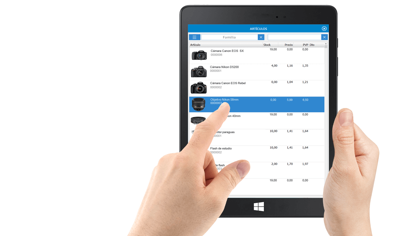 Conecta tu software de TPV táctil con balanzas, lectores de códigos de barras, recogida de firma digital... facilitando el registro de información y haciendo más fácil el proceso de venta. Descubre todas las funcionalidades que te ofrecen nuestros programas para tiendas de fotografía.