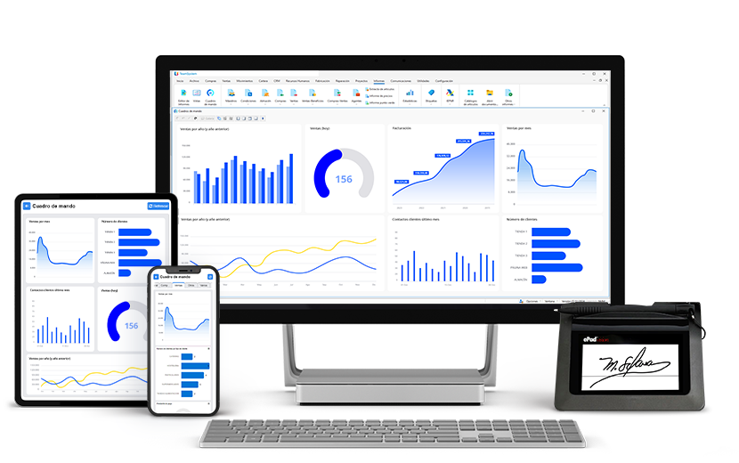 Un Business Intelligence incorporado en el programa para autónomos que le facilita la toma de decisiones, agilizando los procesos, permitiéndole visualizar y analizar de forma inmediata toda la información de su empresa.