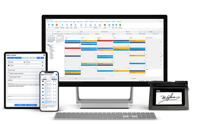 El CRM (Customer Relationship Management) incluido en el programa para autónomos, le permitirá gestionar los contactos de su empresa, las operaciones realizadas, estadísticas y productos adquiridos por cualquier cliente en cualquier momento.