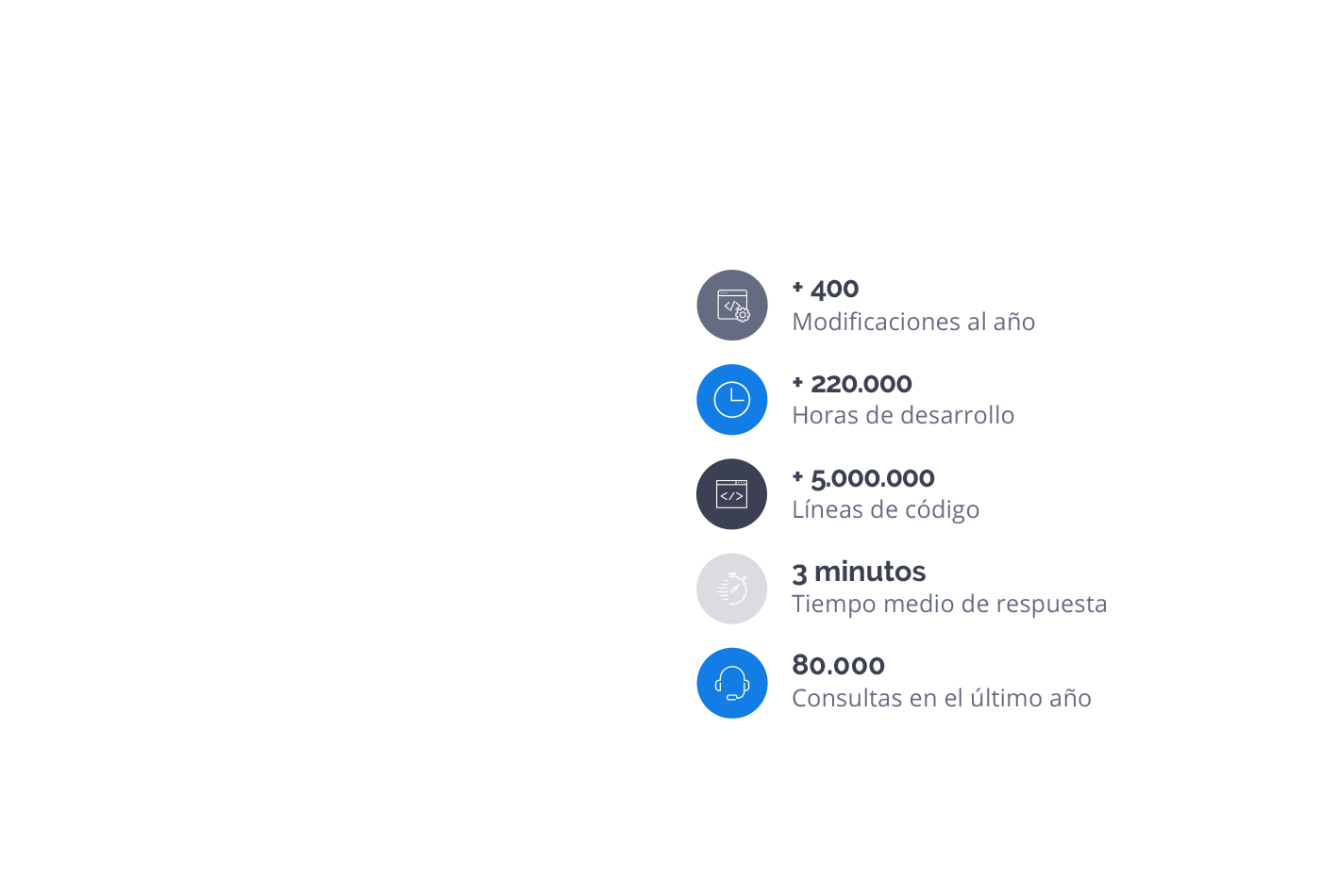 La gran mayoría de nuestros clientes mantiene su contrato de mantenimiento en vigor desde los inicios de nuestra relación comercial, debido a la gran calidad de nuestro servicio postventa, así como a la cantidad de actualizaciones y mejoras que incorporamos al ERP a lo largo del año.