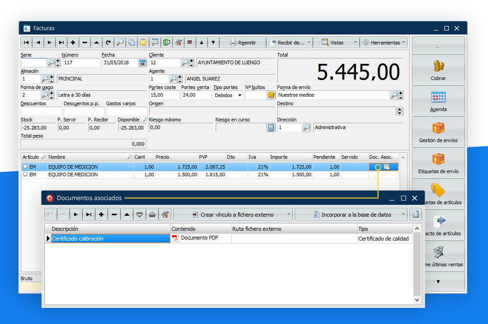 Imagínese asociar en la propia línea del albarán en que recibe el producto el certificado de calidad escaneado; pero también podemos especificar unos “Tipos” de documento para identificarlos fácilmente.