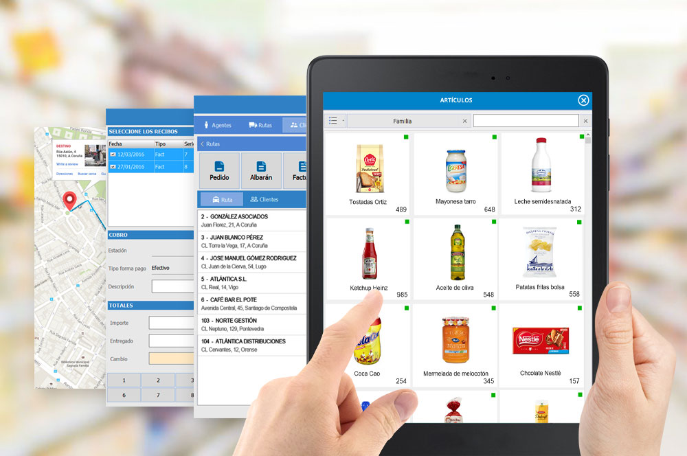 Realice pedidos, albaranes y facturas, introduciendo los artículos manualmente o partiendo de los habituales del cliente. - Agentes, rutas y clientes