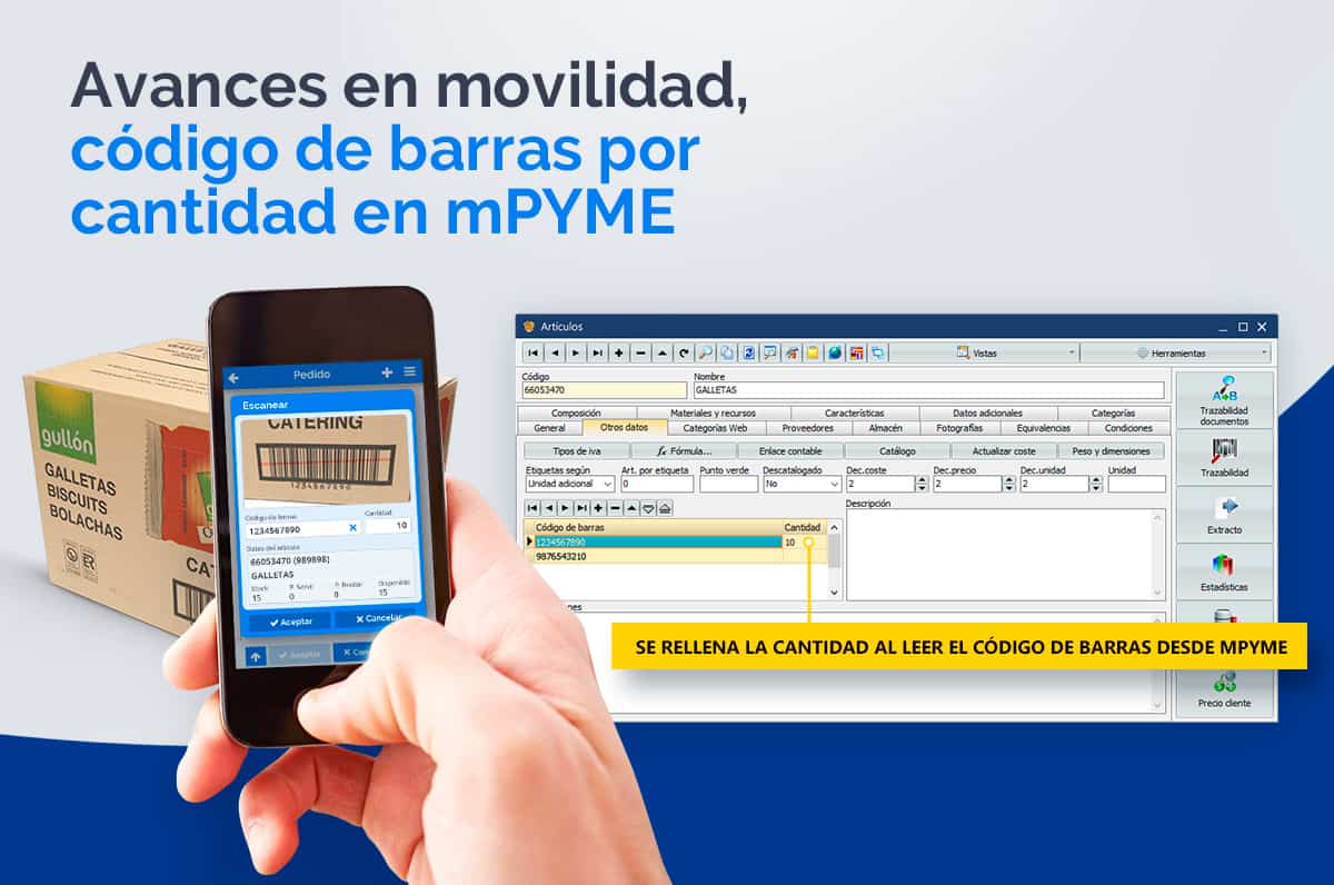 Esta funcionalidad ya está disponible en mPYME Documentos. Si desde nuestro dispositivo móvil leemos un código de barras que lleva asociada una cantidad, ésta se rellenará en la línea del documento automáticamente.