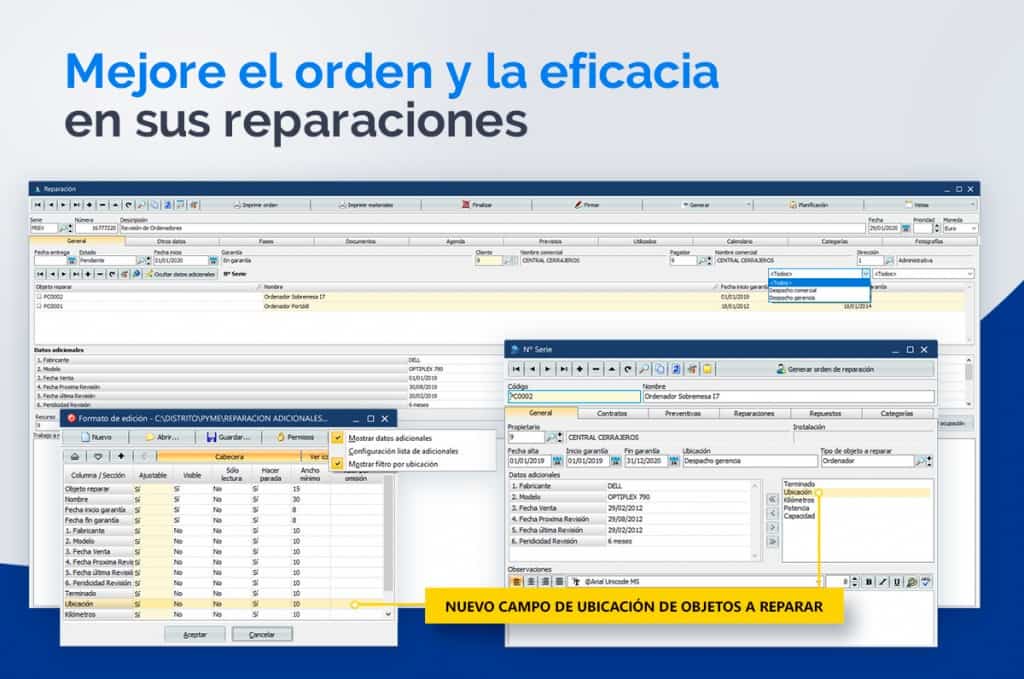 Gracias al importante y completo módulo de reparaciones damos solución a muchas empresas y al sector reparaciones en general como servicios técnicos, desde él podemos crear y gestionar objetos a reparar registrándolos para su posterior seguimiento, pudiendo almacenar el número de serie, el período de garantía, el cliente al que pertenece y cualquier otro campo …
