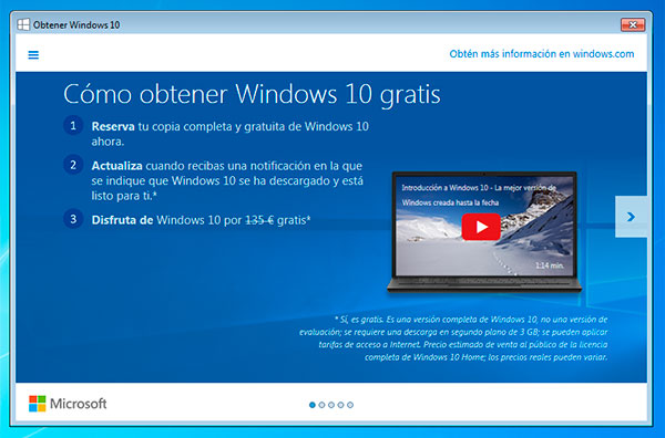Actualizado su PC se instalará una aplicación denominada “Obtener Windows 10” que le permitirá realizar un registro para la actualización gratuita.