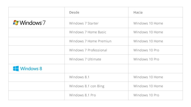 La actualización a Windows 10 es posible desde las últimas versiones de Windows 7 y 8.1 por lo que deberá contar con todos los Service Packs y actualizaciones correspondientes ya instaladas.