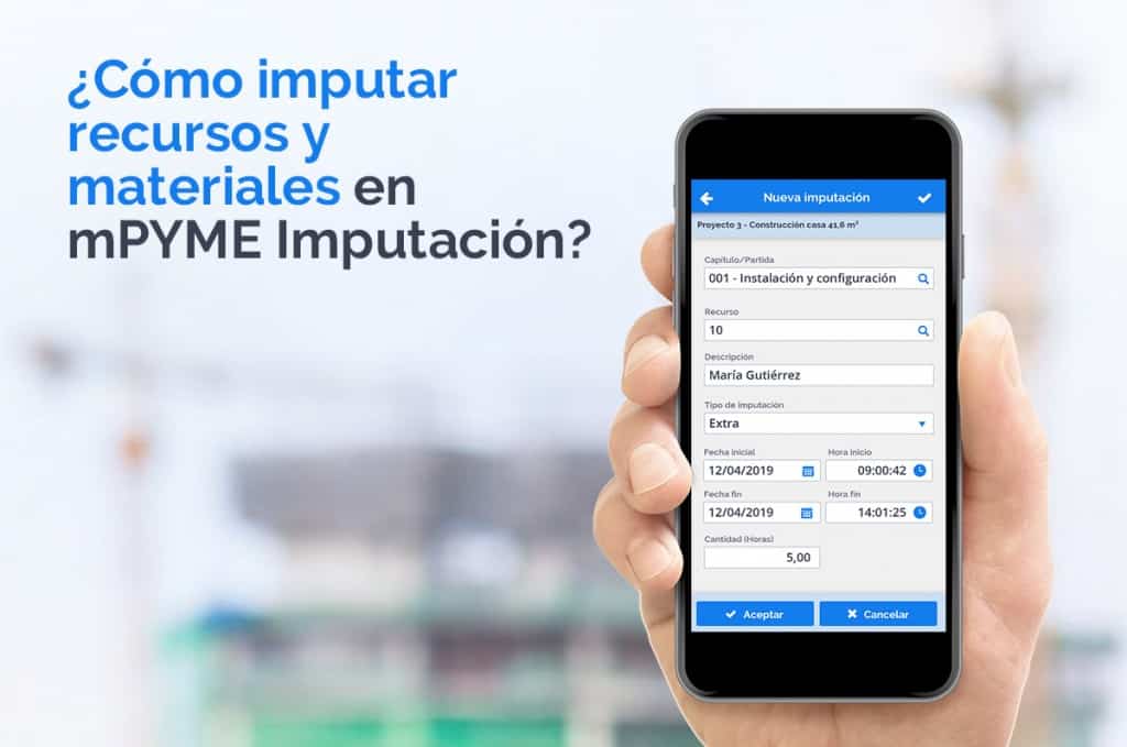 Uno de los módulos de mPYME es Imputación, el cual permitirá a sus empleados, desde cualquier dispositivo con conexión a internet, realizar imputaciones de materiales y de mano de obra a las órdenes de reparación así como a los proyectos.