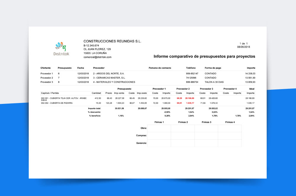 Lance pedidos automáticamente desde la comparativa, los cuales ya van preimputados a cada proyecto y partida, de tal forma que la recepción de documentos de compra se convierte en una tarea prácticamente automática.