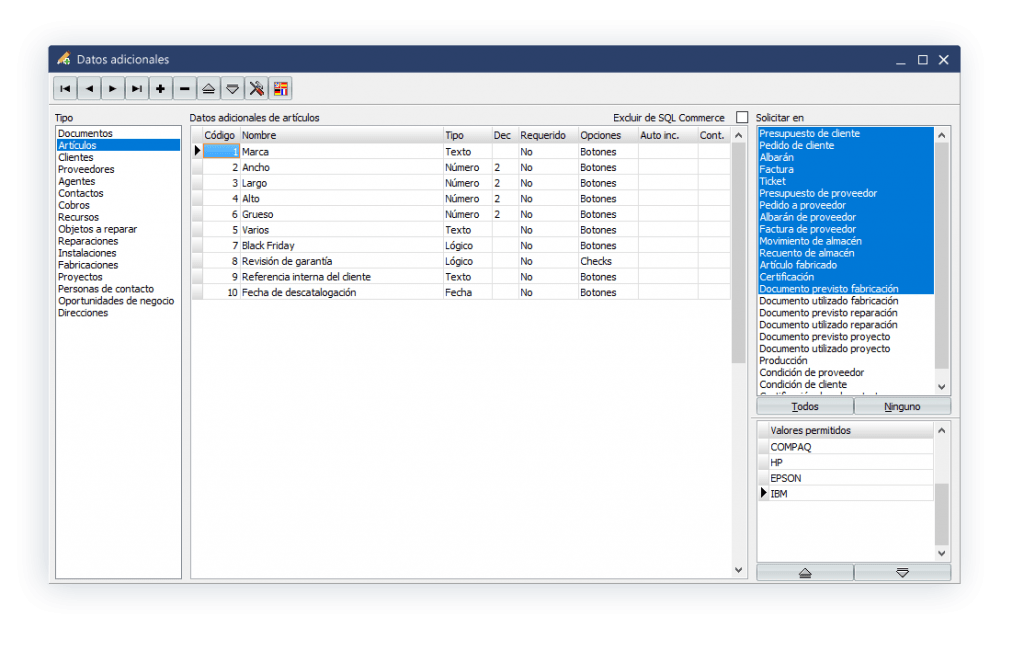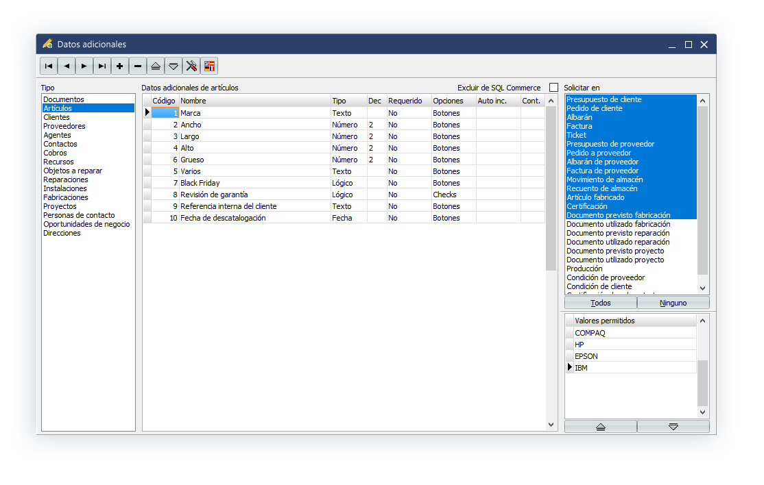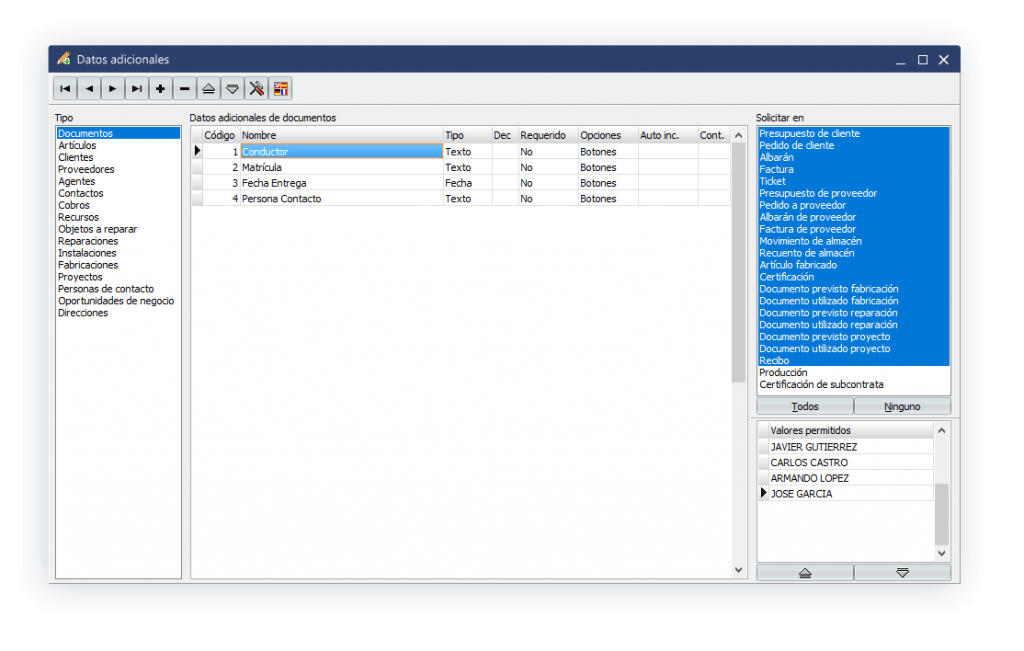 Nuestras aplicaciones se desarrollan con la premisa de poder adaptarse a cualquier tipo de empresa, simplemente con el gran poder de parametrización que brindan nuestros sistemas, por ello los datos adicionales juegan un papel crucial y súmamente importante.