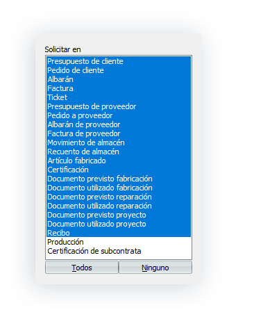 Pero a todas estas configuraciones, se une la posibilidad de que la aplicación los requiera en partes concretas del programa como pueden ser, presupuesto pedido albarán, factura, ticket, condición de proveedor, etc.