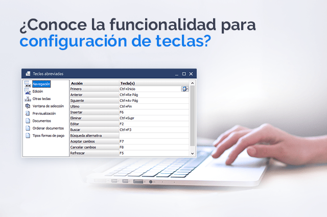 Dentro de nuestras soluciones se pueden establecer las distintas teclas rápidas que queramos configurar para las funciones del ERP.