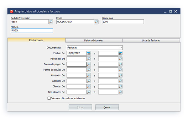Por ejemplo, si tenemos una ruta de reparto con un mismo repartidor y queremos asignar ese repartidor a una serie de facturas, gracias a este proceso podemos introducir ese valor, o múltiples valores a esos documentos de forma automática.