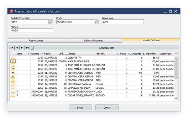 Hemos desarrollado un proceso que permite poder asignar masiva y automáticamente a las facturas de venta una serie de datos adicionales, como son número de reparto, repartidor y fecha de reparto (datos adicionales), para disponer de toda esta información.