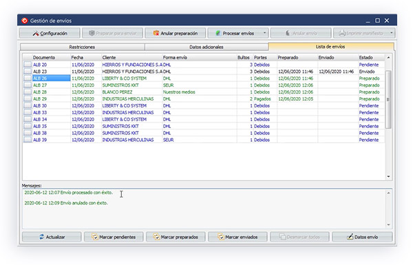 - Impresión de las etiquetas en el formato adecuado para la agencia de transporte