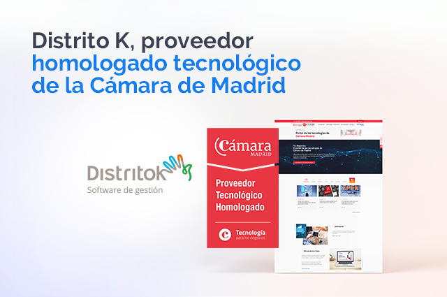 Con esta alianza, Distrito K se convierte en proveedor homologado tecnológico de la Cámara Oficial de Comercio, Industria y Servicios de Madrid, abriendo un mundo de posibilidades a los asociados como eventos, formaciones, webinar, promociones, demos, consultorías, venta, desarrollo, implantación, mantenimiento de soluciones tecnológicas de ERP, aportando un gran valor añadido y creando un tándem que a fecha de hoy ya podemos decir está resultando muy fructífero para todas las partes.