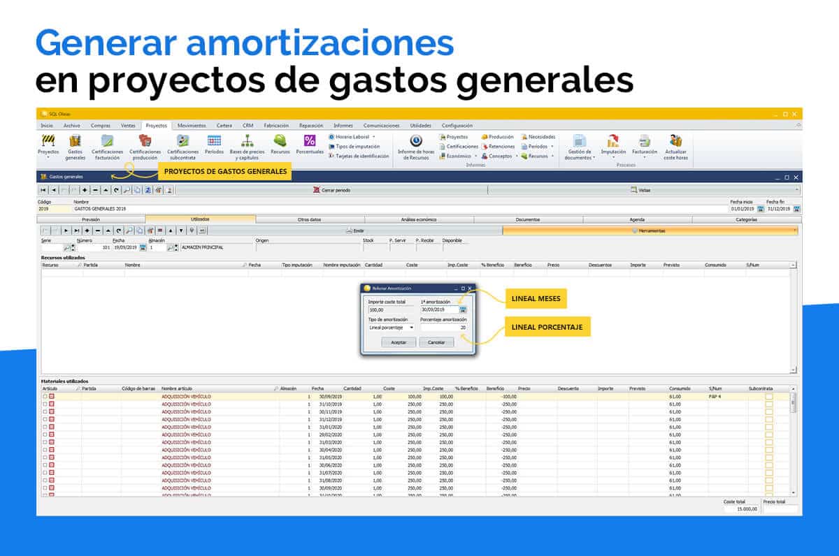 Hemos añadido una nueva opción, en los proyectos de gastos generales, se permite dividir una imputación de materiales en diferentes cuotas.