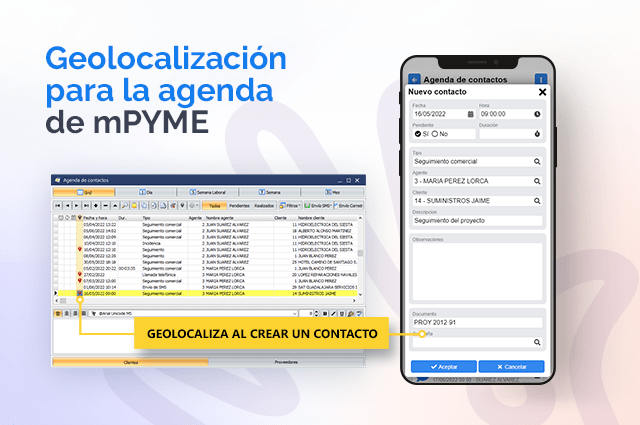 Ahora hemos ido más allá no solo en la solución de movilidad sino también en las aplicaciones de escritorio y hemos añadido la opción de geolocalizar al crear un contacto, tanto en la agenda de documentos como en la agenda general.