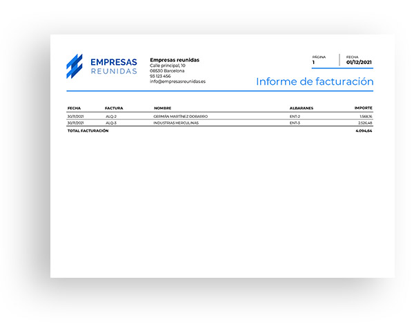 Este sistema nos permite incluir en el software todos los datos adicionales que consideremos relevantes como la fecha original de alquiler, o las unidades originalmente alquiladas, que se irán replicando en los sucesivos albaranes y facturas de cada periodo de facturación.