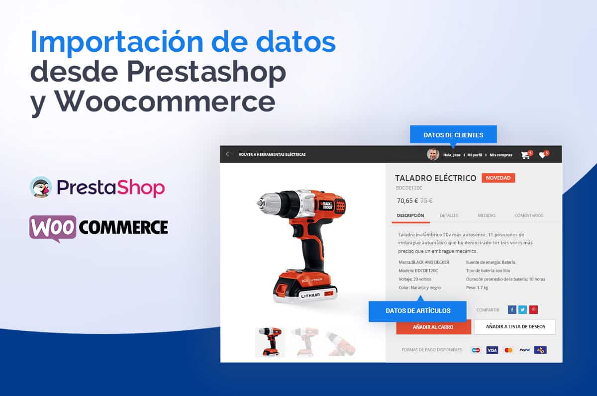 Por ellos hemos desarrollado un importador de datos desde Prestashop o Woocommerce, que permite entre otros: