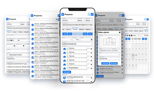 Uno de los módulos más importante de nuestro ERP es el módulo de proyectos. Este sistema nos permite administrar el ciclo de vida de sus obras e instalaciones, generando presupuestos, planificación, imputación de costes, certificación y facturación, equilibrando las cargas de trabajo y coordinando las tareas de su equipo.