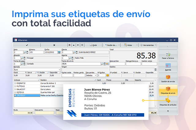 Además de las etiquetas de artículos, también podemos imprimir las etiquetas de envío.