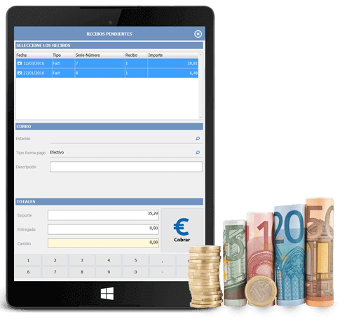 Realice los cobros de las facturas y albaranes que realiza, así como cobros de ventas antiguas incluso realizadas por otros agentes, pague los distintos gastos que se produzcan y realice un arqueo de caja para saber el saldo resultante.
