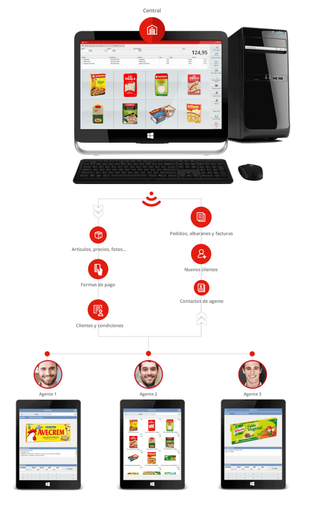 Con nuestro sistema de autoventa dispondrá de un completo software de gestión empresarial que permite realizar la gestión de clientes, artículos, pedidos, albaranes, facturas, cobros, gastos, agenda de contactos … A continuación se describen las opciones más importantes a tener en cuenta.