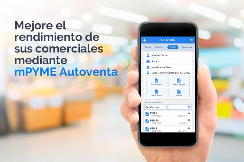 mPYME AUTOVENTA, es una solución que completa las grandes ventajas de nuestros software de movilidad mPYME. Gracias a esta nueva incorporación, hemos dotado a nuestras soluciones de los procesos más exigentes y necesarios en la gestión diaria de nuestros clientes.