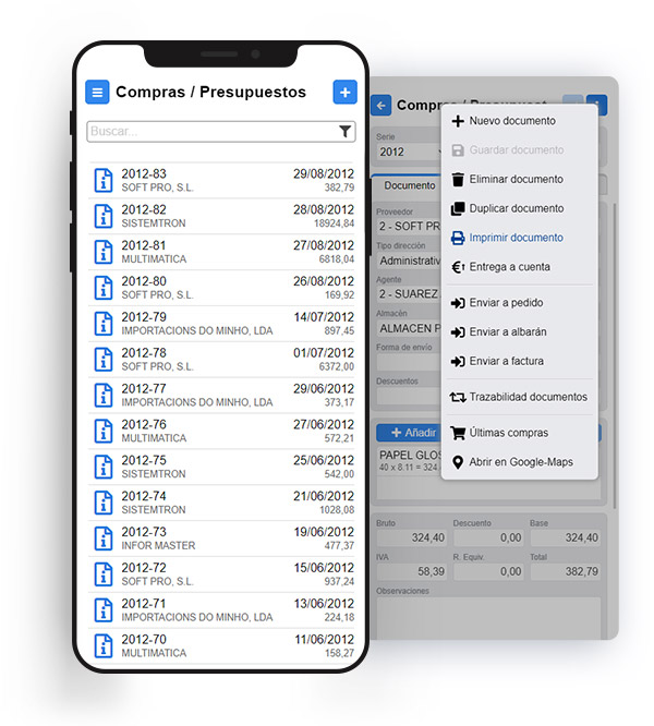 mPYME Documentos. Permite gestionar documentos de compras, ventas, movimientos de almacén y recuentos desde cualquier ubicación.