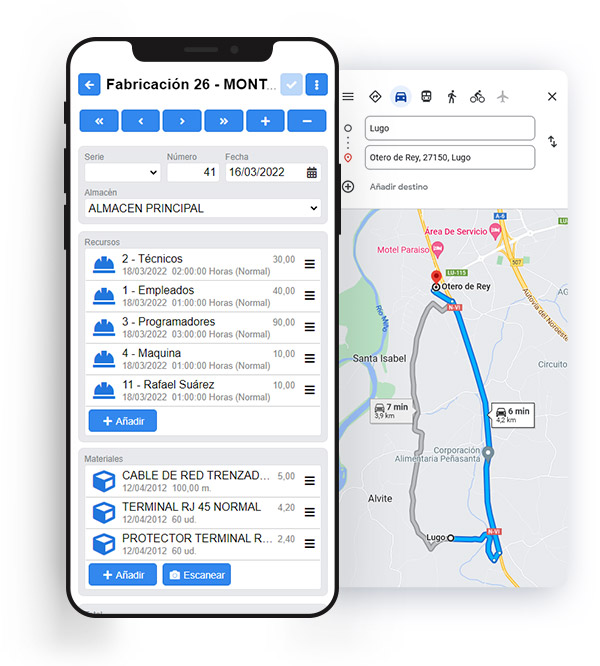 Nuestras soluciones de movilidad permiten geolocalizar a los usuarios que trabajan con ellas dentro de ciertos procesos, como un fichaje, la realización de un documento, la imputación de un material o mano de obra o incluso el alta de una reparación, entre otros.