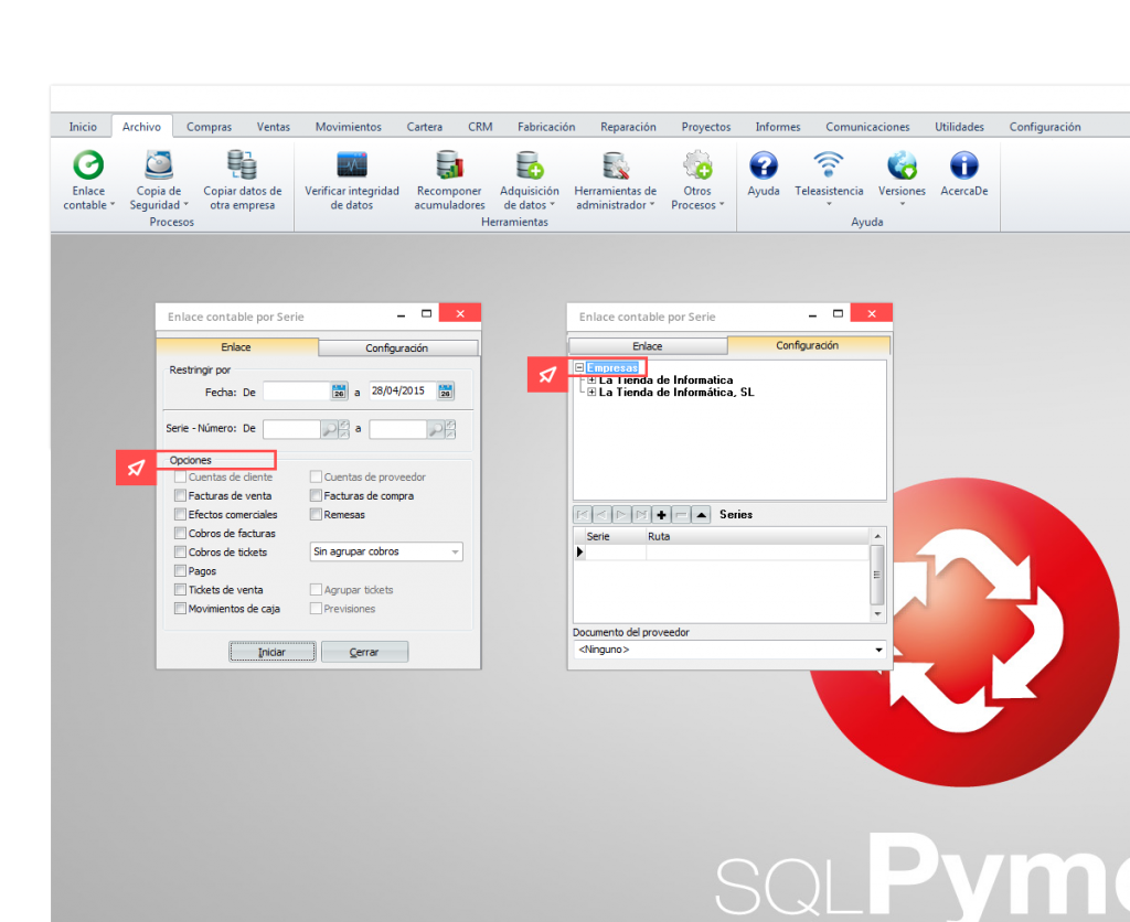 Con nuestro software de gestión podremos realizar esta tarea de manera ordenada y flexible, enlazando la información que queramos remitir a esa contabilidad mediante parámetros temporales o tipos de documentos.