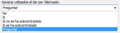 Generar utilizados al dar por fabricado nos permite controlar el comportamiento de la aplicación cuando demos por fabricada una orden de fabricación. Las opciones disponibles son las siguientes: