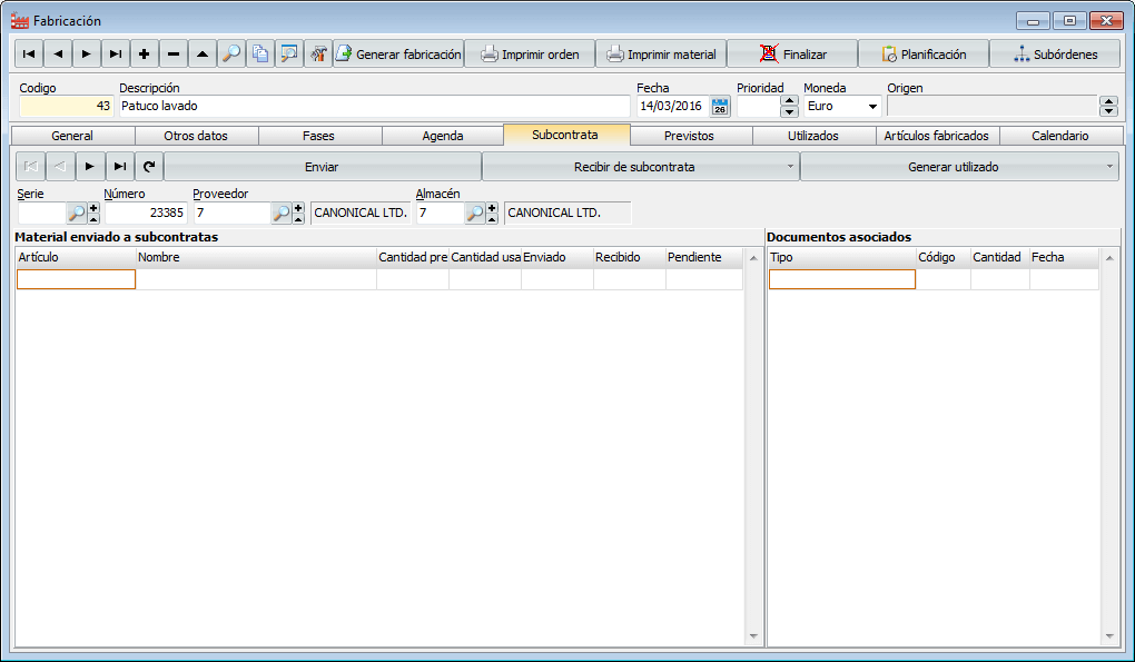 Con esta novedad es posible abordar la gestión de los procesos de fabricación asociados a una orden de fabricación cuando estos han de ser realizados por un agente externo a la empresa.