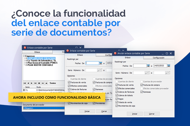 La funcionalidad del enlace contable en nuestras soluciones es una opción vital para nuestros clientes, ya que nos permite integrar la gestión con la contabilidad.