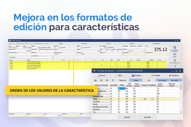 Nuestros sistemas integrados permiten configurar una o varias dimensiones para cada característica, así como la forma en que se presentan en pantalla en los procesos de compra y venta (forma de tabla, lista…).
