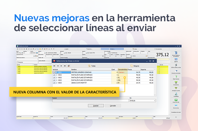 Ahora, hemos ido un paso más allá con esta opción y hemos incorporado una mejora para este proceso, se trata de la columna que nos permite visualizar el valor de la característica asignada a cada línea, así podemos indicar cualquier valor como talla/color, lote/fecha caducidad, nº de serie, entre otros.